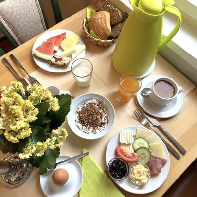 Probieren Sie unsere hausgemachten Marmeladen, die vielen frischen und regionalen Produkte und starten Sie gut gestärkt in Ihren Tag!